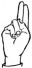 На ћирилици написано ЕВГЕНИЈЕ ЈУГОВИЋ састоји се из 15 слова [?]. Исписано ћириличном једноручном азбуком за глувонеме:
